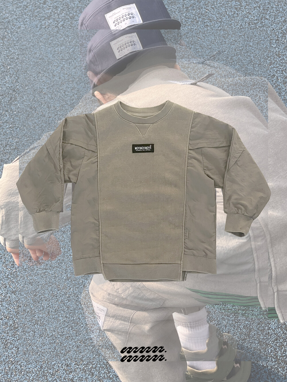- 우븐 배색원단이 믹스된 맨투맨